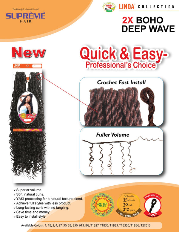 2X Boho Deep Wave, Box Braids Crochet Hair, Curly Ends, Synthetic Braiding Hair Extensions For Women, 30 Inches, 210 gms, 2 Bundle, 35 Strands